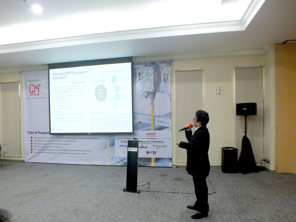 | Program | ・Background of the Gas Price and Solutions to Reduce Gas Consumption by CMP Way PT. CMPLUS Consulting Indonesia ・The Potential for Carbon Neutrality Through Electrification PT. Kansai Energy Solutions Indonesia ・Optimizing Energy Use for Value Added Creation PT. Mitsubishi Heavy Industries Indonesia ・Biomass Energy Fuel Use in Indonesia PT. Prima Khatulistiwa Sinergi ・Real-Time Energy Monitoring with IoT-Enabled Building Automation System PT. Schneider Indonesia ・Steam Thermal Energy Solutions to reduce Boiler energy consumption PT. Spirax Sarco Indonesia |