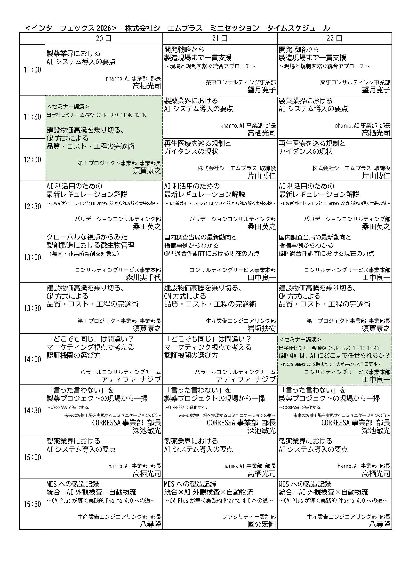 さらに、シニアコンサルタント 田中良一 による講演「GMP QA は、AIにどこまで任せられるか?~PIC/S Annex 22を踏まえて“人が砦となる”重要性~」 (事前申し込み不要) も、22日(金) 出展社セミナー会場6(4ホール)14:10-14:40から実施いたします。